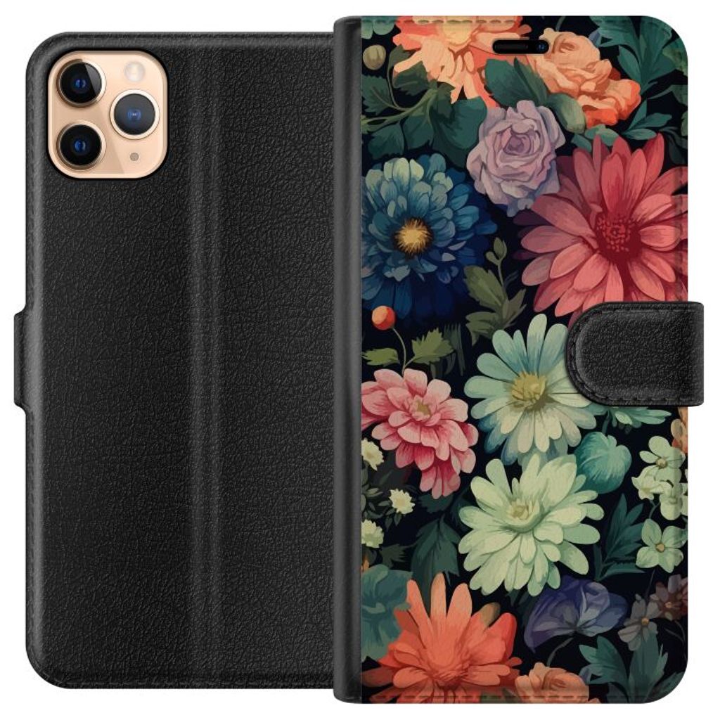 Apple iPhone 11 Pro Max Svart Plånboksfodral Färglada blommor