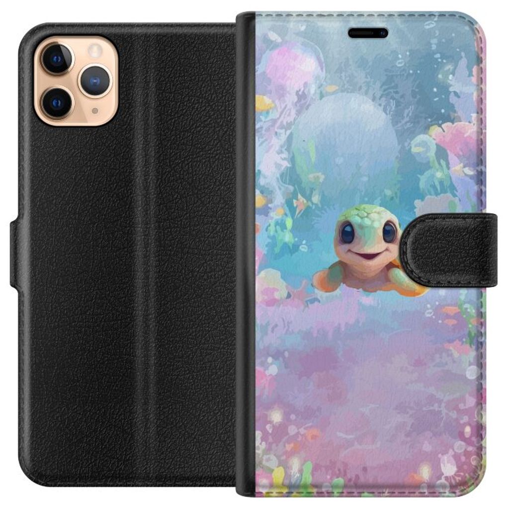 Apple iPhone 11 Pro Max Svart Plånboksfodral Glad Sköldpadda