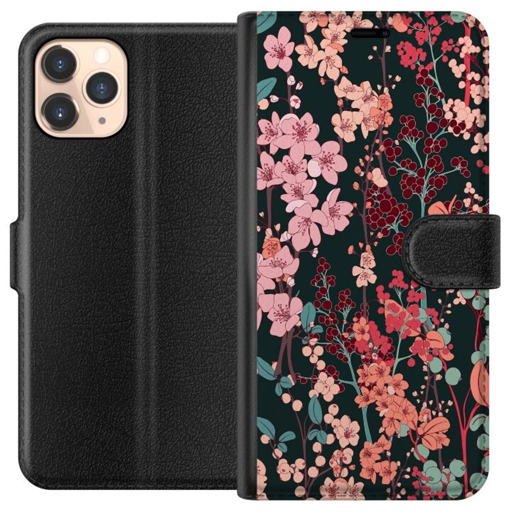 Apple iPhone 11 Pro Svart Plånboksfodral Blommor