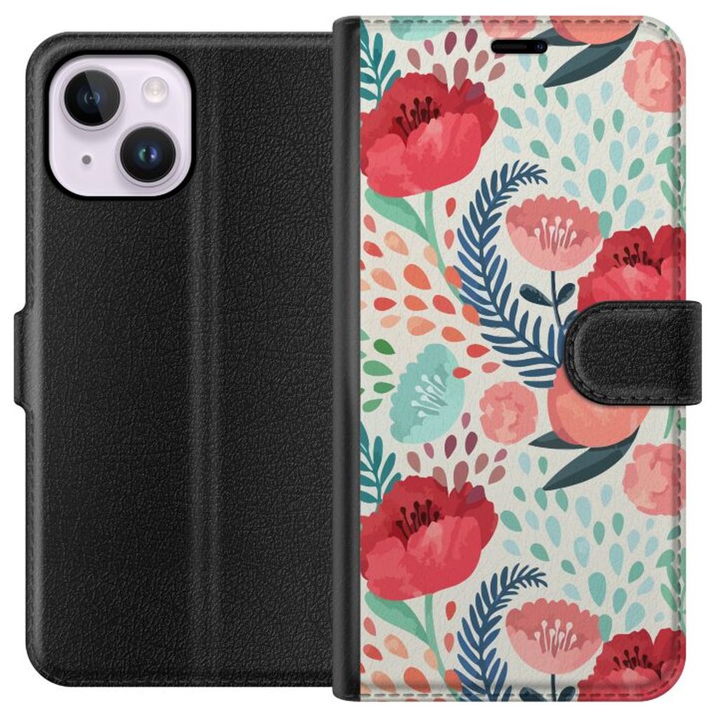 -Särskilt utformat för iPhone 14 Plus plånboksfodral. Estetiskt och funktionellt: Flora-mönster med en elegant färgkombination.