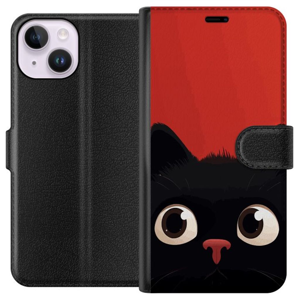 Apple iPhone 14 Svart Plånboksfodral Busig Katt