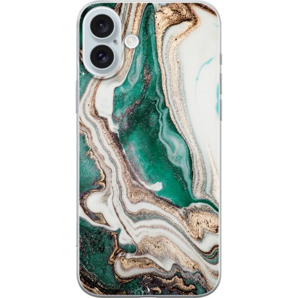 Apple iPhone 16 Plus Transparent Mobilskal Grön / Guld marmor