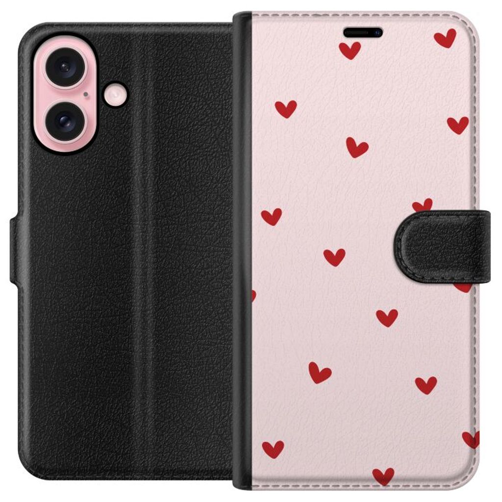 -Särskilt utformat för iPhone 16 plånboksfodral. Estetiskt och funktionellt: Små Hjärtan-mönster med en elegant färgkombination.