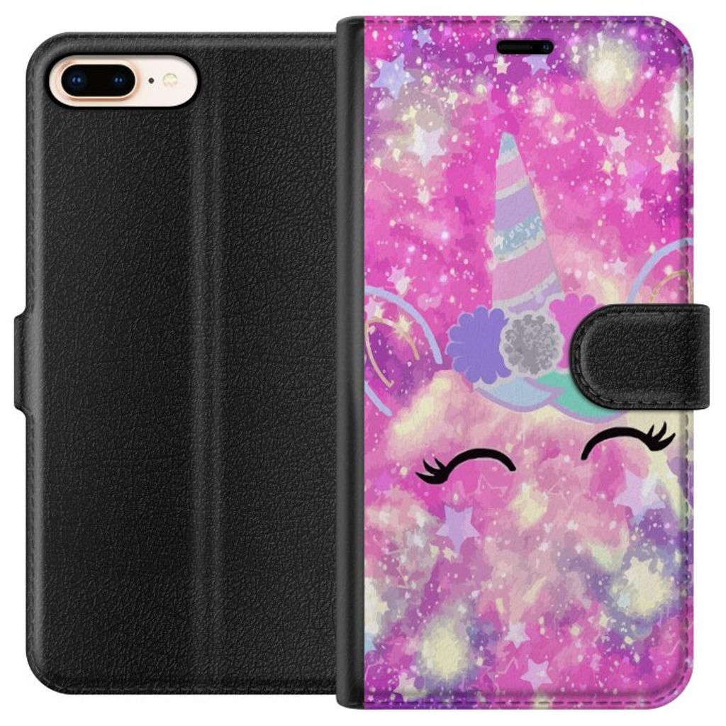 Apple iPhone 8 Plus Svart Plånboksfodral Glad Enhörning