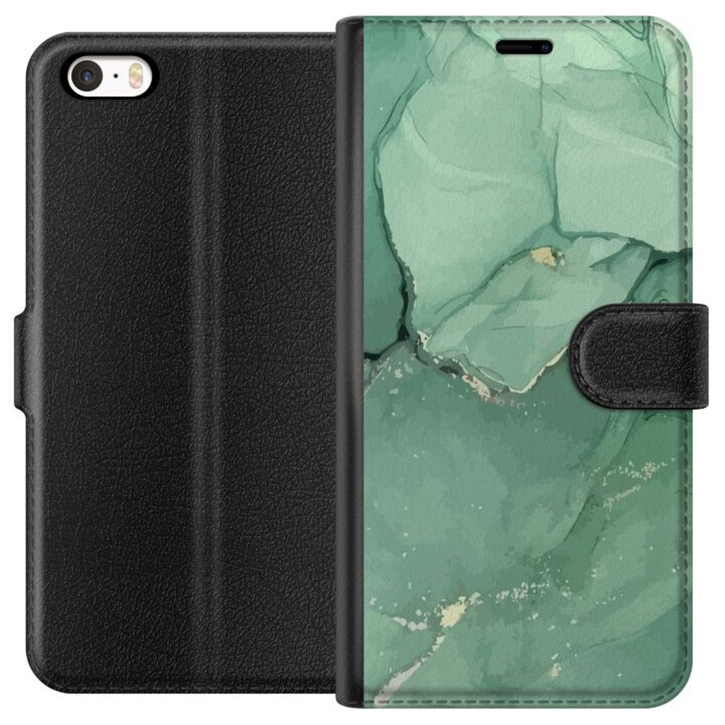-Särskilt utformat för iPhone SE (2016) plånboksfodral. Estetiskt och funktionellt: Grön Marmor-mönster med en elegant färgkombination.