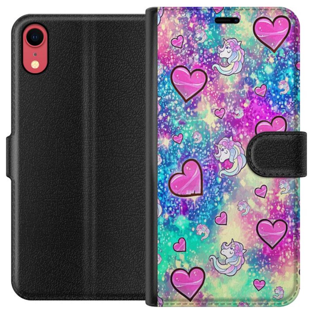 Apple iPhone XR Svart Plånboksfodral Enhörning och hjärtan