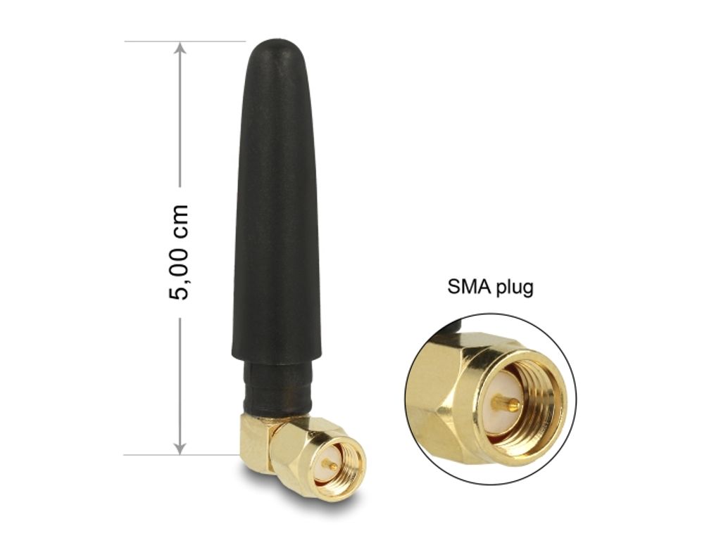 Delock LTE-antenn SMA-hane 90° 2 dBi rundstrålande – svart
