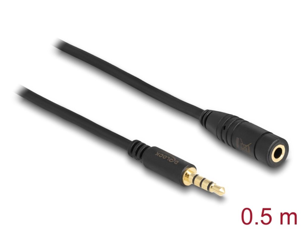 Delock stereo jack 3.5 mm förlängningskabel 4-polig, 0,5m – svart