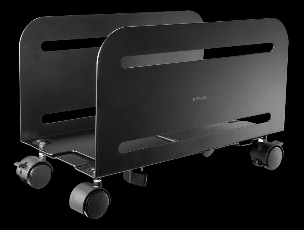 Optimera din arbetsyta med Deltaco OFFICE universella datorstativ med hjul i svart. Tillverkat av hållbart stål och en justerbar design, passar detta stativ enkelt de flesta ATX-datorchassin och andra enheter mellan 119 mm och 209 mm i bredd. Med enkla hjul flyttar du smidigt datorn utan lyft, vilket gör det enkelt att hålla både dammfritt runt datorn och omorganisera kontoret. Dess kompakta utförande hjälper dig spara värdefullt skrivbordsutrymme, samtidigt som den stöder en belastning på upp till 10 kg.