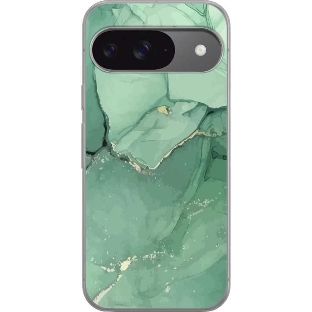 Google Pixel 9 Pro Transparent Mobilskal Grön Marmor