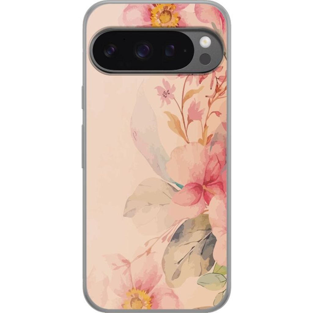 Google Pixel 9 Pro XL Transparent Mobilskal Färgsprakande Blommor
