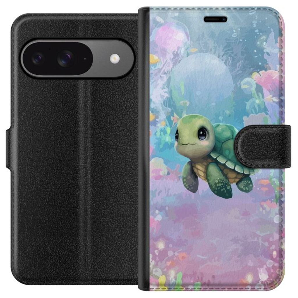 Google Pixel 9 Svart Plånboksfodral Simmande Sköldpadda