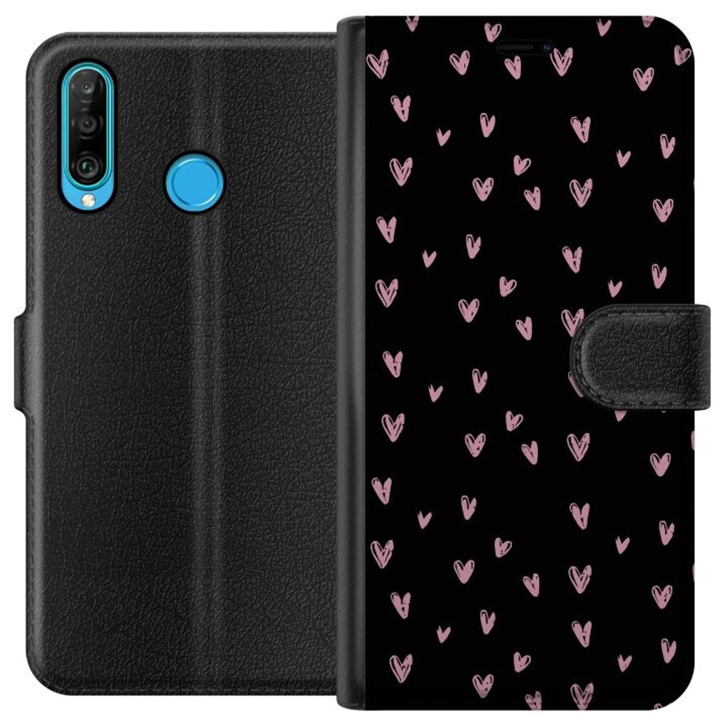 Huawei P30 lite Svart Plånboksfodral Små Kärleksymboler