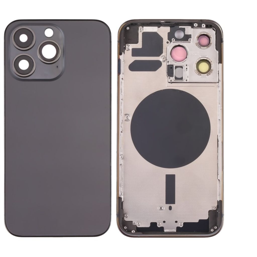 Ersättning baksida för iPhone 13 Pro i Svart. Premiumkvalitet bakre panel med exakt passform och elegant design. Återställer ursprungligt enhetsutseende och ger skydd för interna komponenter. Hållbar konstruktion med slät finish. Väsentlig ersättningsdel för enheter med sprucken eller skadad bakglas.