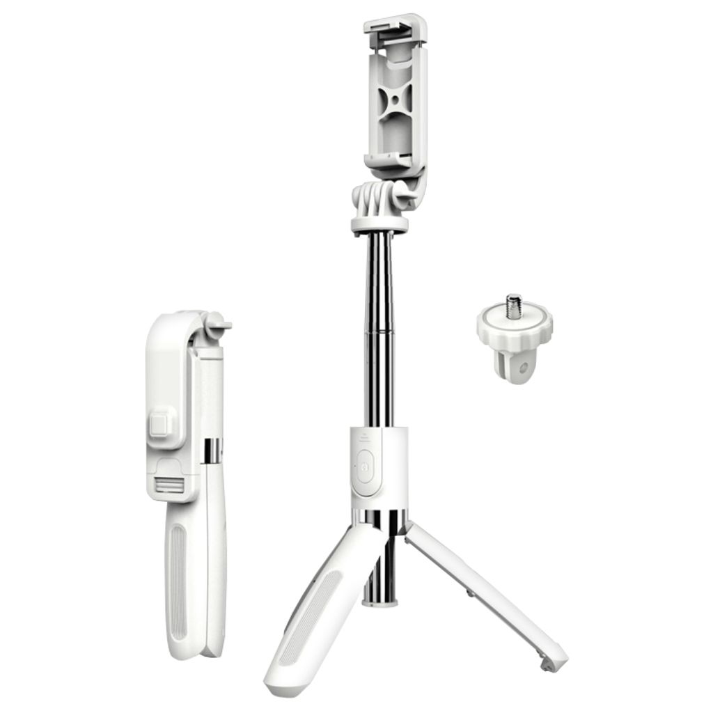 Bluetooth selfiestick/stativ 1m med fjärrkontroll – Vit