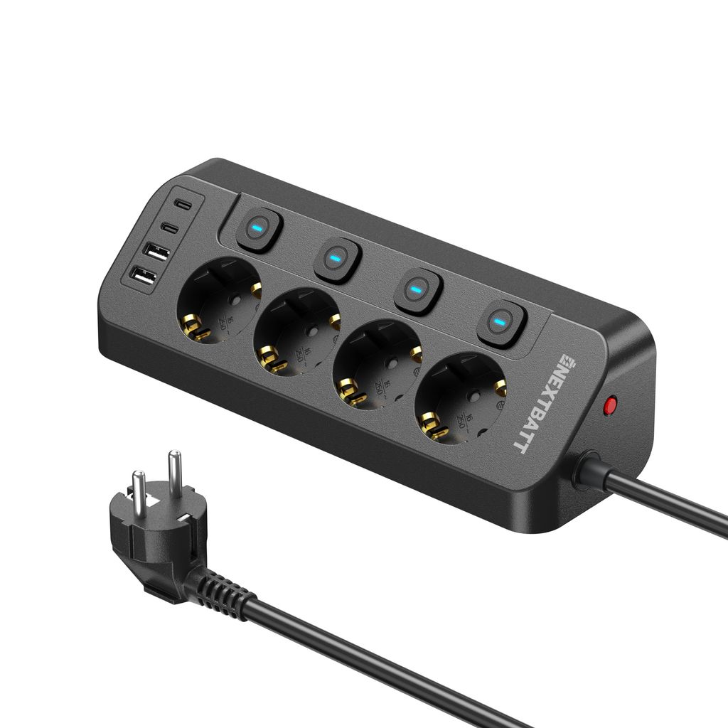 NEXTBATT Snabbladdning Grenuttag 4-vägs/USB-A/USB-C – svart