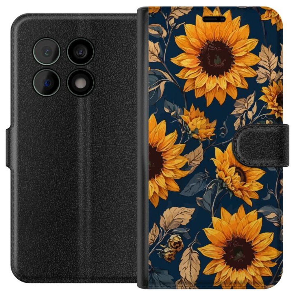 OnePlus 10 Pro Svart Plånboksfodral Solrosor