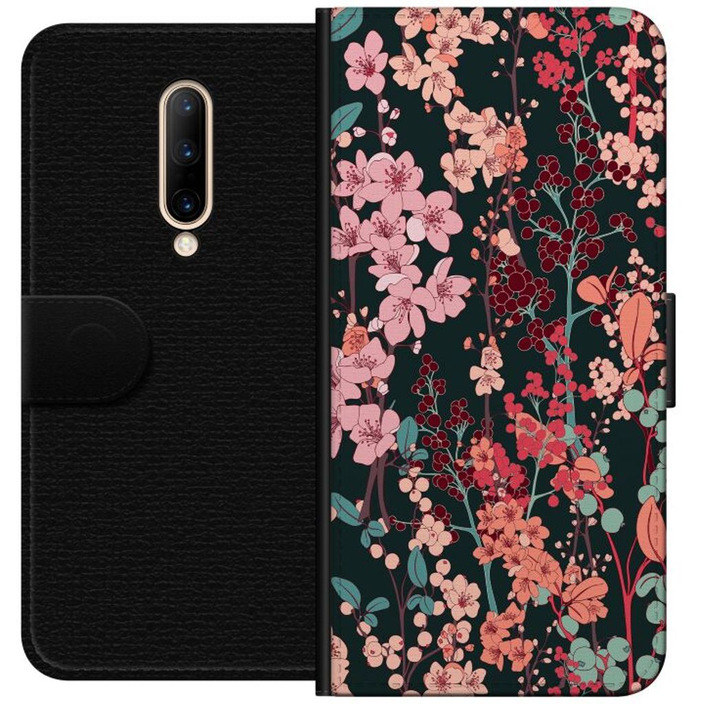 OnePlus 7 Pro Svart Plånboksfodral Blommor