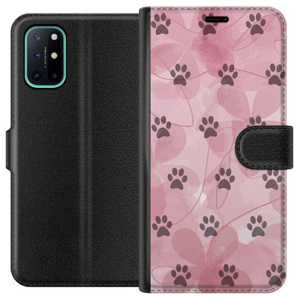 OnePlus 8T Svart Plånboksfodral Rosa Tassar