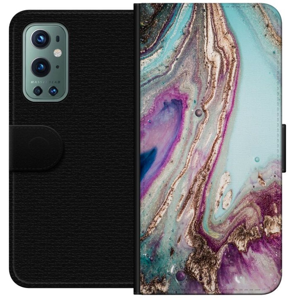 OnePlus 9 Pro Svart Plånboksfodral Lila marmor