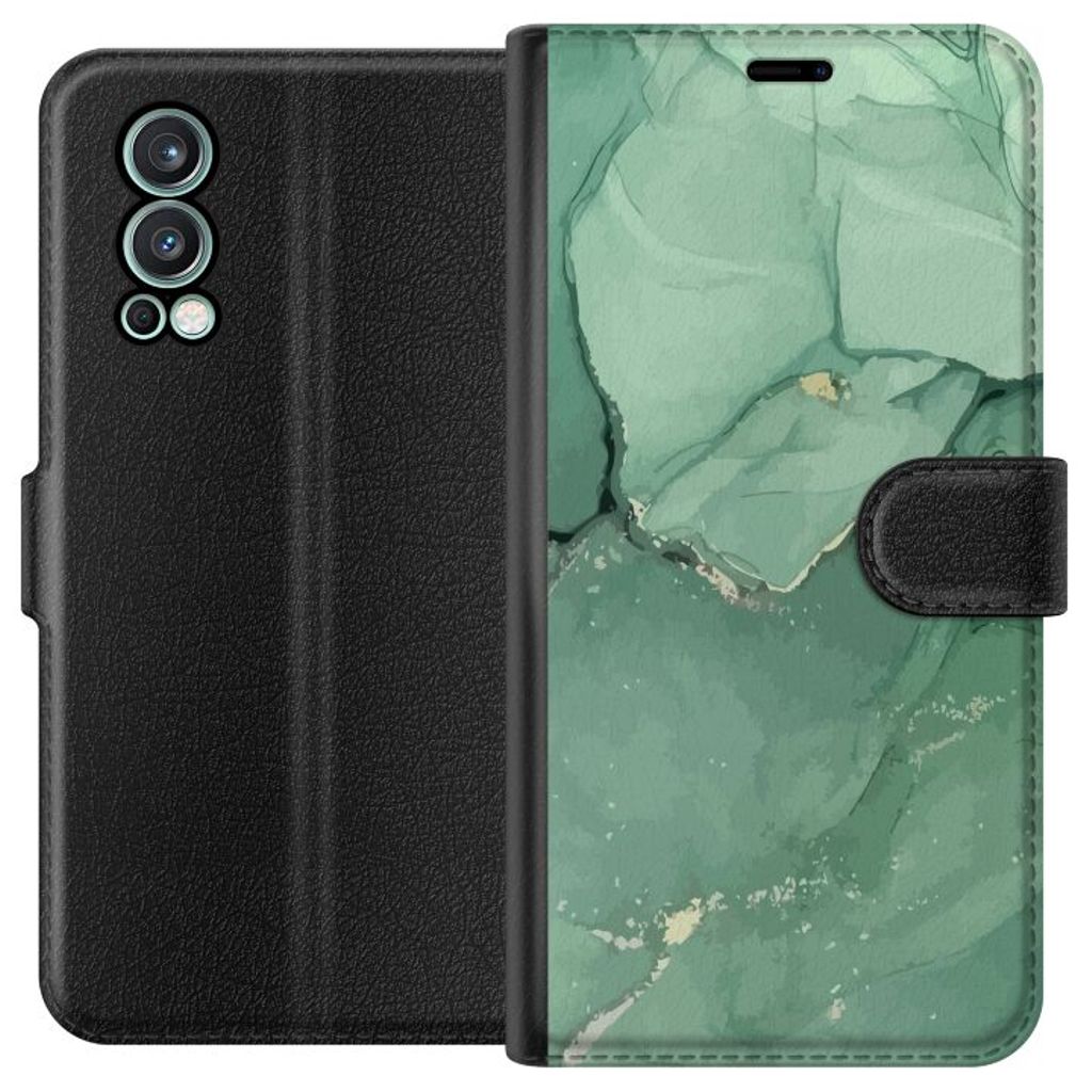 -Särskilt utformat för Nord 2 5G plånboksfodral. Estetiskt och funktionellt: Grön Marmor-mönster med en elegant färgkombination.