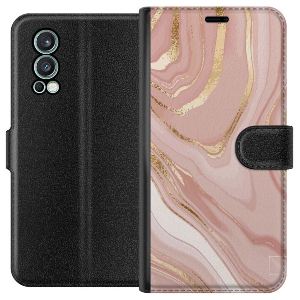 OnePlus Nord 2 5G Svart Plånboksfodral Ljusrosa marmor