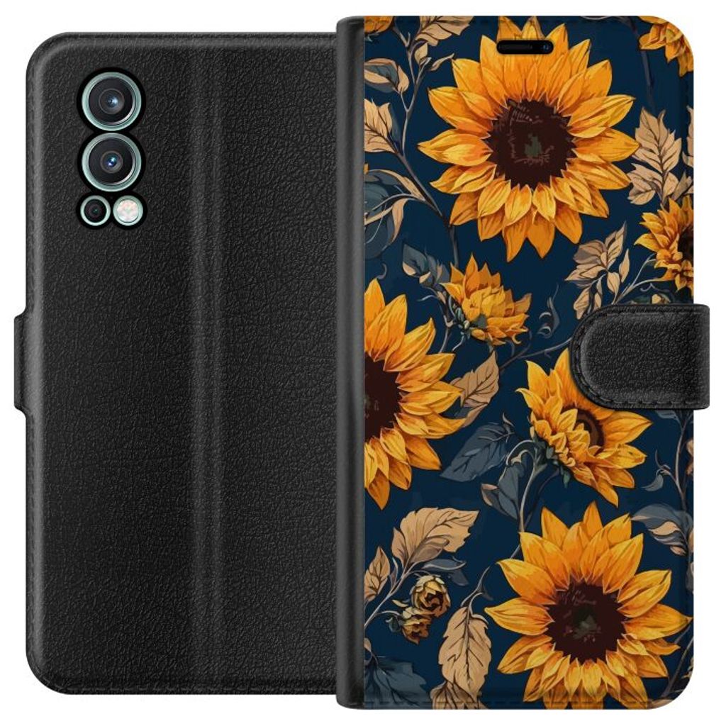 OnePlus Nord 2 5G Svart Plånboksfodral Solrosor