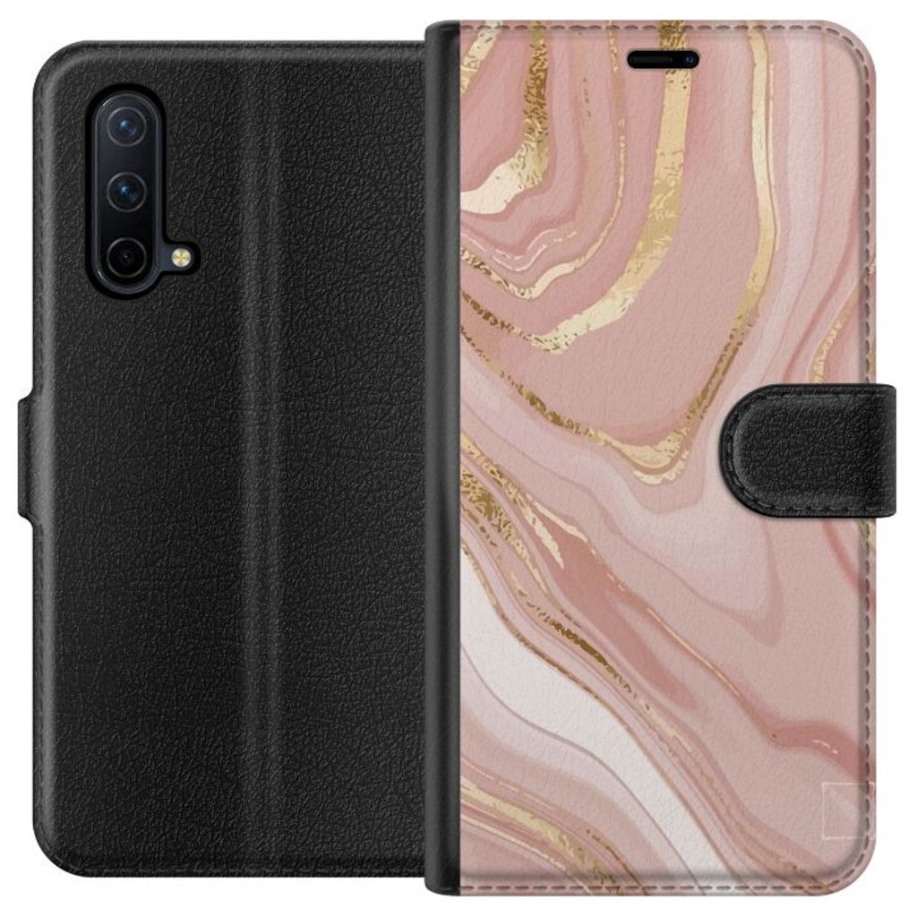 -Särskilt utformat för Nord CE 5G plånboksfodral. Estetiskt och funktionellt: Ljusrosa marmor-mönster med en elegant färgkombination.