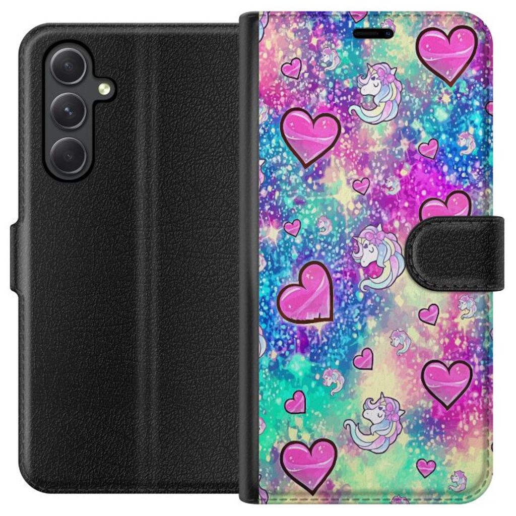 Samsung Galaxy A15 5G Svart Plånboksfodral Enhörning och hjärtan