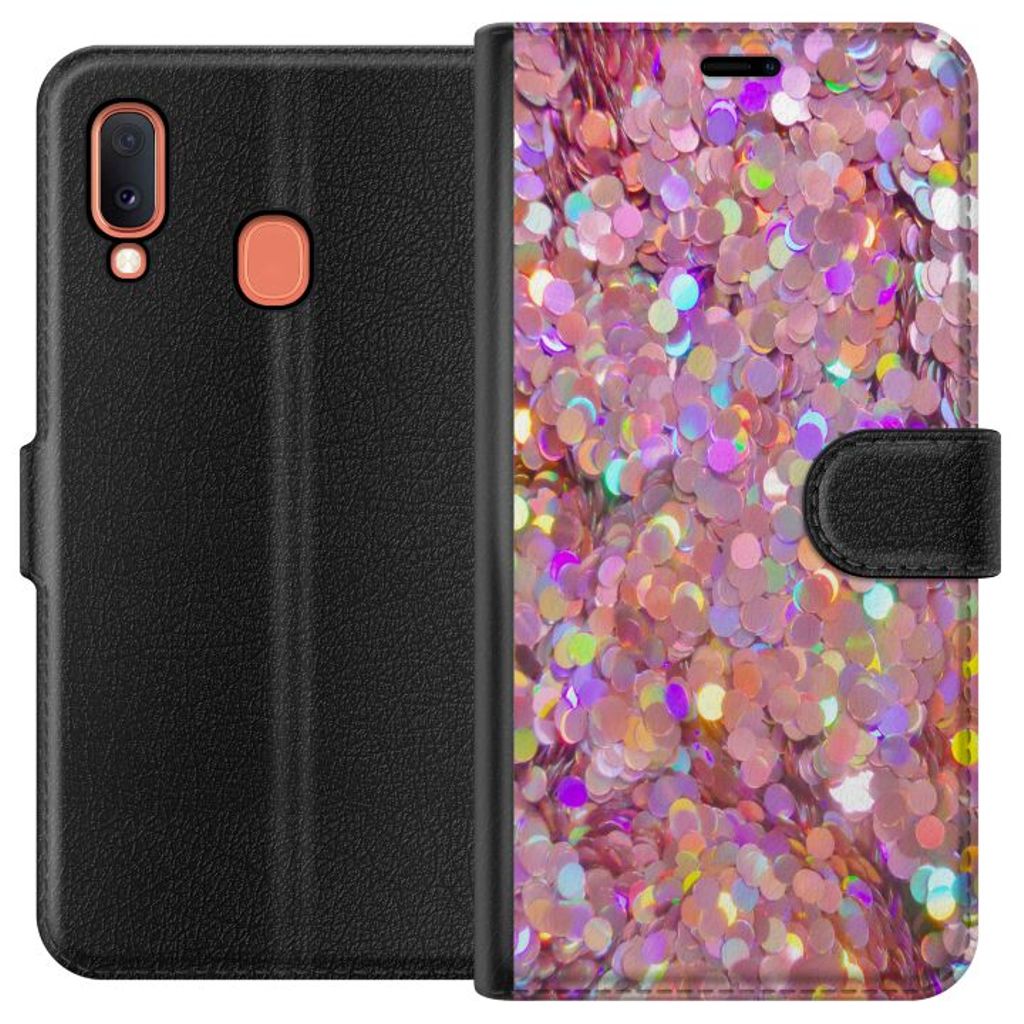 -Särskilt utformat för Galaxy A20e plånboksfodral. Estetiskt och funktionellt: Glitter-mönster med en elegant färgkombination.