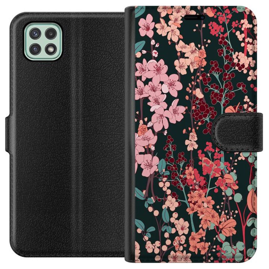 Samsung Galaxy A22 5G Svart Plånboksfodral Blommor