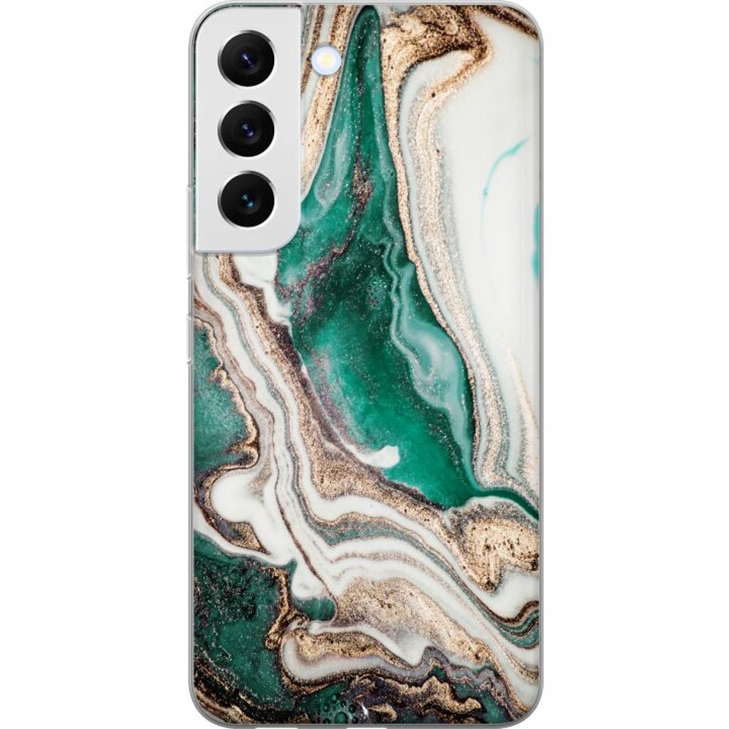 Samsung Galaxy S22 5G Transparent Mobilskal Grön / Guld marmor