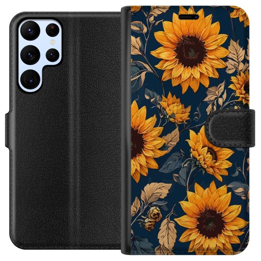 Samsung Galaxy S22 Ultra 5G Svart Plånboksfodral Solrosor