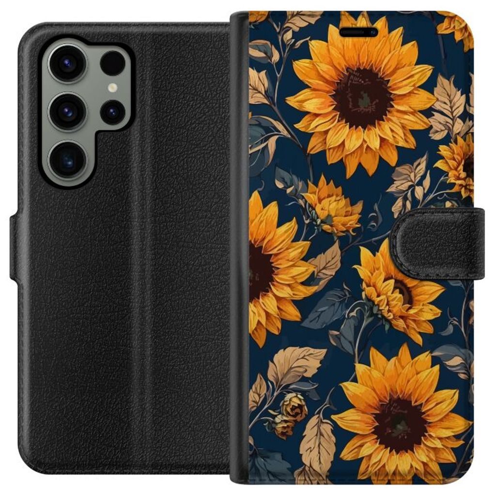 Samsung Galaxy S23 Ultra Svart Plånboksfodral Solrosor