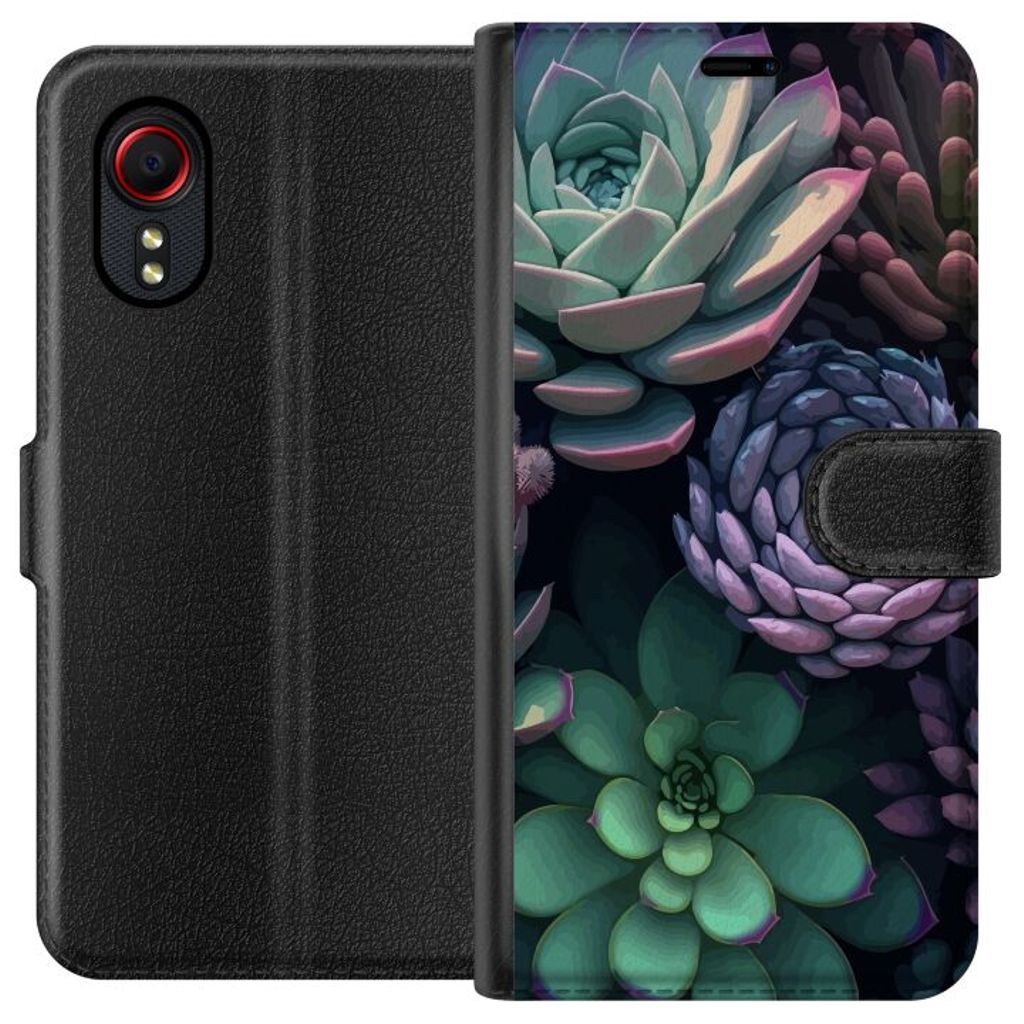 -Särskilt utformat för Galaxy Xcover 5 plånboksfodral. Estetiskt och funktionellt: Taklök grön-mönster med en elegant färgkombination.