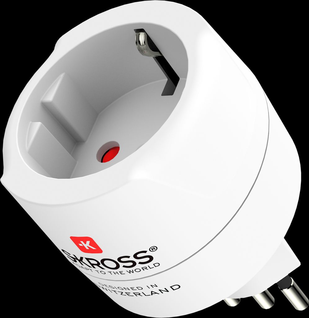 Europa till Schweiz + Italien + Brasilien. För 2- och 3-poliga enheter (Schuko eller Euro-kontakt) används schweiziska, italienska och brasilianska uttagsstandarder i 15 länder runt om i världen. Vår SKROSS landsadapter Europa till Schweiz + Italien + Brasilien ger en pålitlig och enkel anslutning för enheter med en Schuko- eller Euro-kontakt, vilket säkert möjliggör användning av strömkrävande enheter som bärbara datorer och hårtorkar.