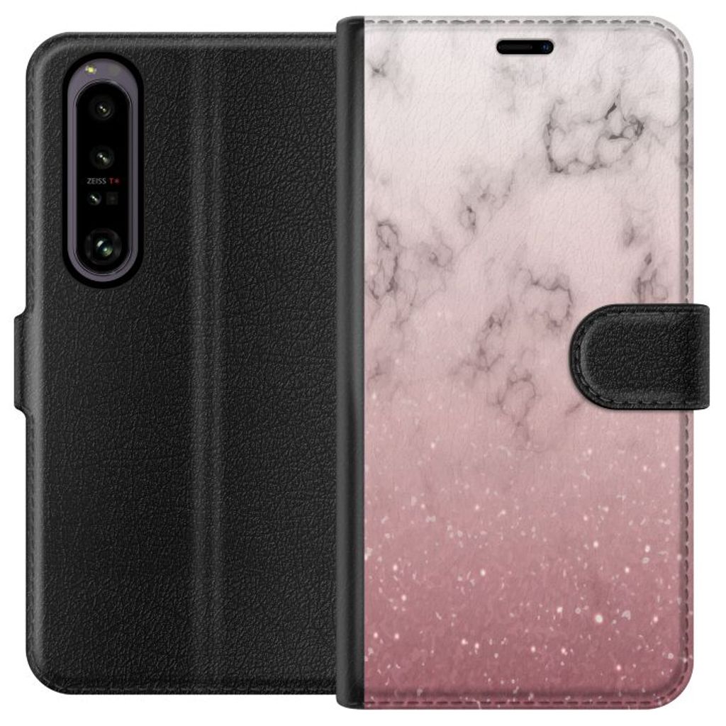 -Särskilt utformat för Xperia 1 IV plånboksfodral. Estetiskt och funktionellt: Glitter och marmor-mönster med en elegant färgkombination.