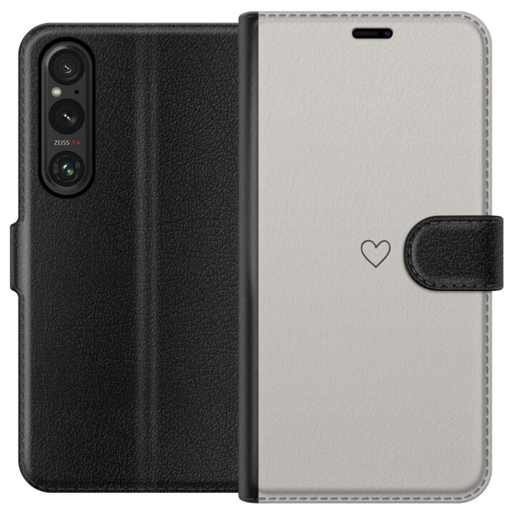 Sony Xperia 1 VI Svart Plånboksfodral Grått hjärta