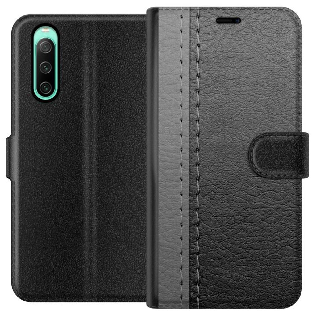 Sony Xperia 10 IV Svart Plånboksfodral Grått Fake Läder