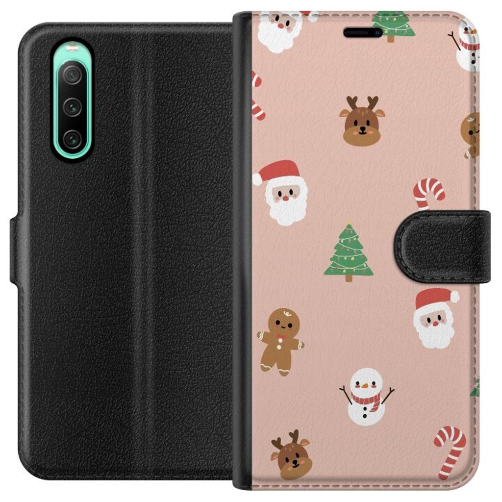 -Särskilt utformat för Xperia 10 IV plånboksfodral. Estetiskt och funktionellt: Klassisk Julfest-mönster med en elegant färgkombination.