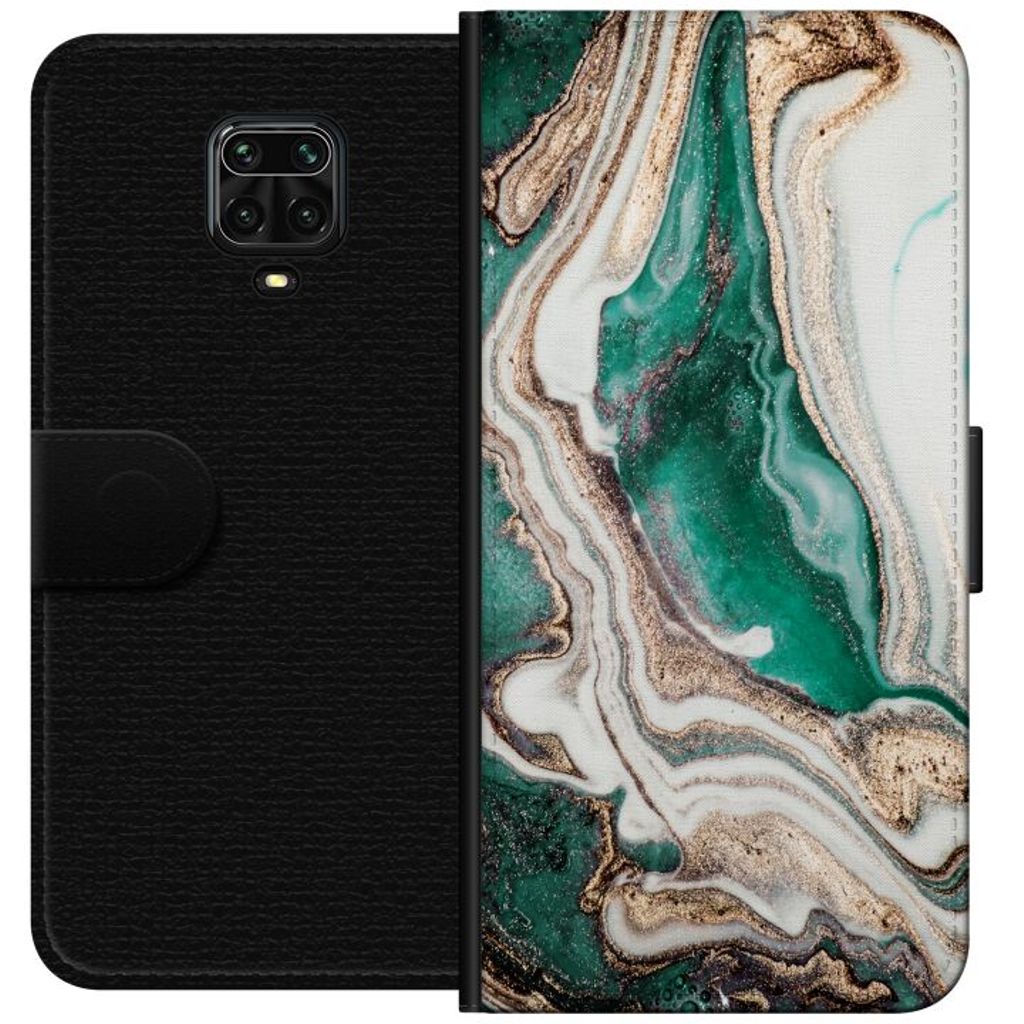 Xiaomi Redmi Note 9 Pro Svart Plånboksfodral Grön / Guld marmor