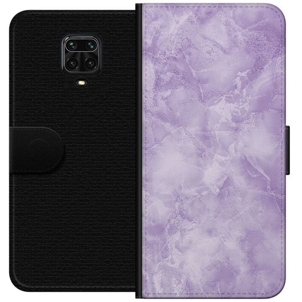 -Särskilt utformat för Redmi Note 9 Pro plånboksfodral. Estetiskt och funktionellt: Lila marmor-mönster med en elegant färgkombination.
